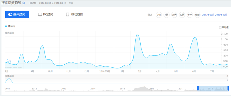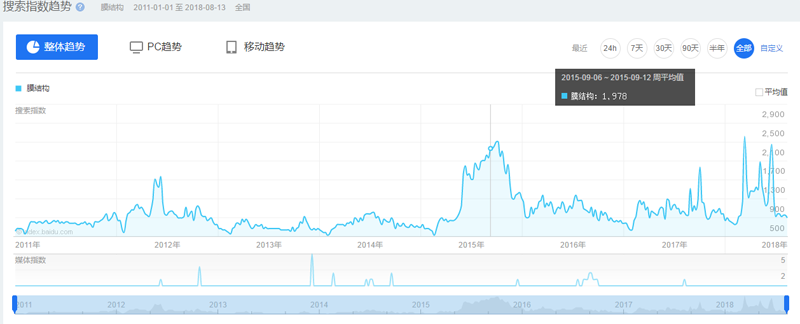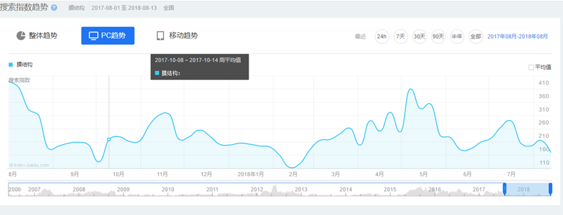 最后,就是中國膜結構網的熱度趨勢了。近些年來,膜結構行業在中國穩步提升,每年的旺季分別在3到6月份,以及8到10月份,所以想做膜結構的伙伴們可以選擇這個時段去做哦。