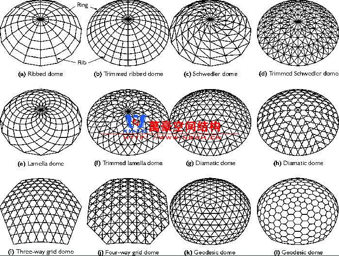 ▲網殼的各種網格形式