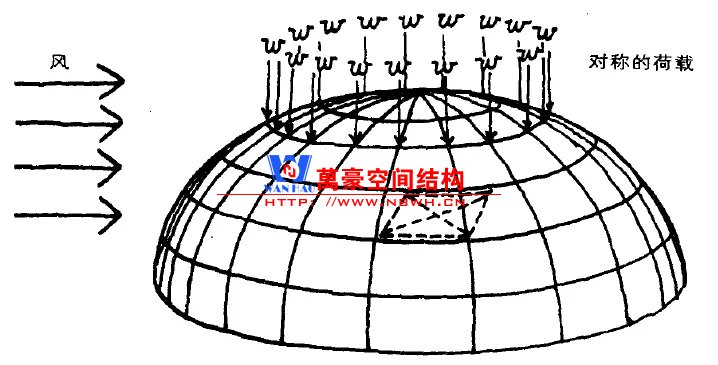 網殼受力方式為薄膜作用,屬于拱結構向三維的拓展;因此,與拱類似的問題會出現在網殼上。比如:整體穩定問題;不對稱荷載敏感等。