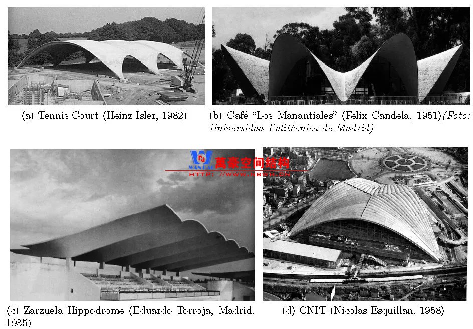 說網殼結構,就得從混凝土薄殼開始說起。在20世紀中葉,混凝土薄殼蓬勃發展。EduardoTorroja,Felix Candela,Nicolas Esquillan,Heinz Isler等在世界各地都實踐了很多混凝土薄殼作品。他們的殼體纖薄明快,放到現在看也都是建筑與結構融合的精品。