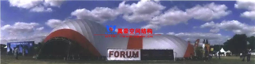 提高平面內剛度的直接方式是采用三角形網格。富勒發明了短線呈穹頂,并應用于1967年蒙特利爾國際博覽會上的美國館——一座直徑為76m的3/4球形建筑。