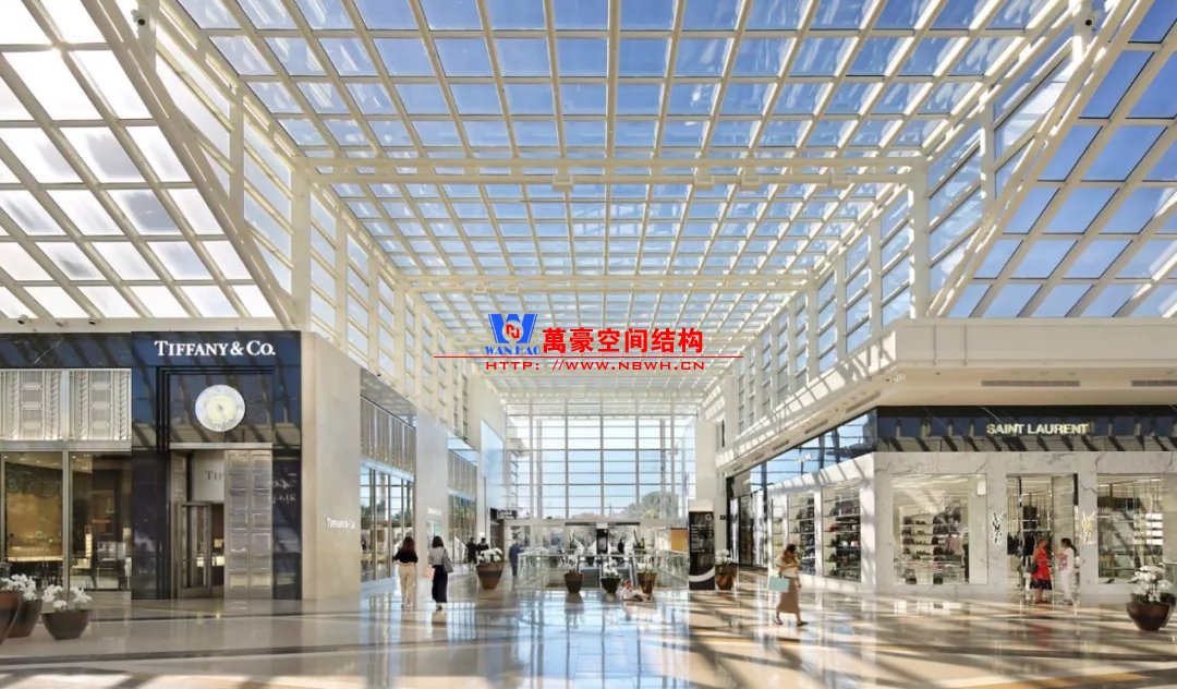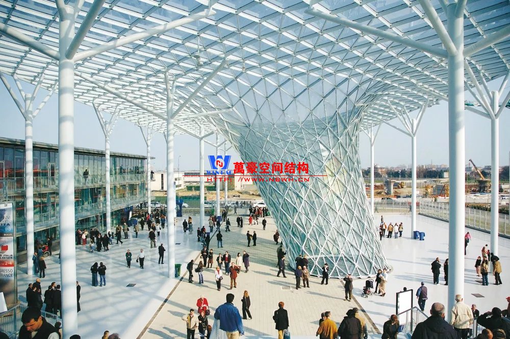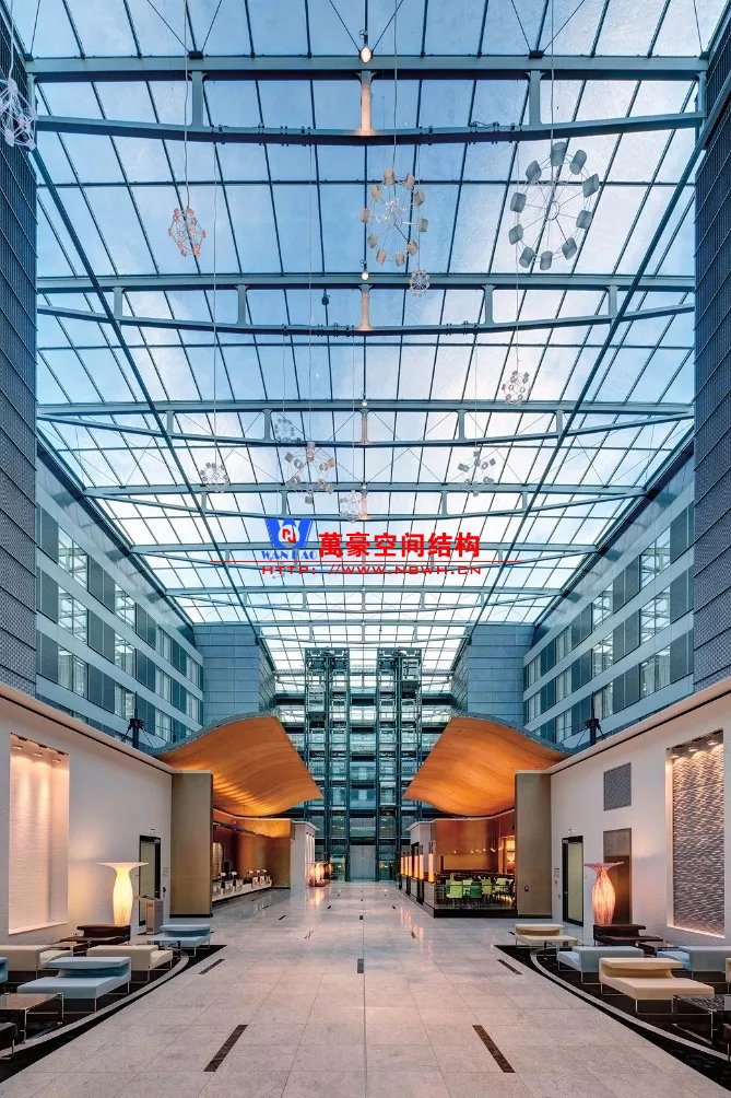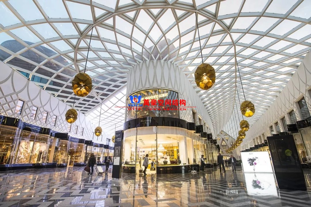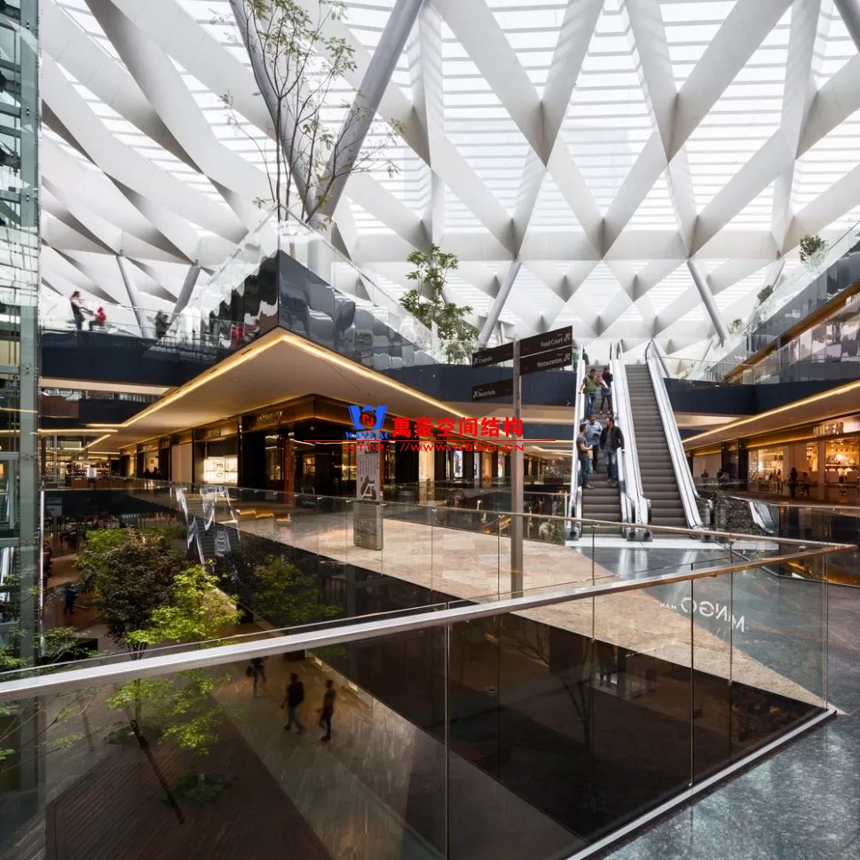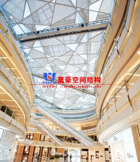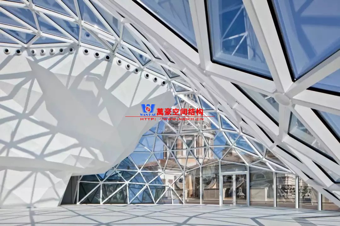 對于跨度比較小的天幕,采用單向梁或交叉梁即可實現。這一類天幕的結構創新主要體現的網格布置、截面形式和節點細節方面。例如,網格布置可以是三角形、四邊形、聯方形、六邊形等等。