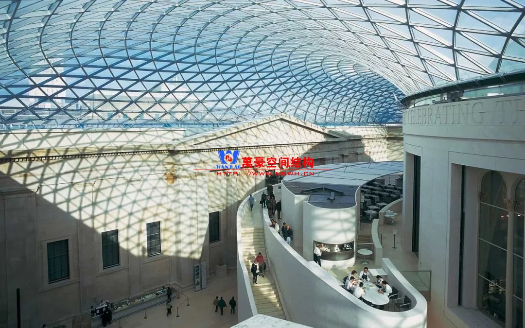 英國博物館為了解決內部缺乏空間、缺乏通道、中心圖書館利用率低的問題,啟動了大庭院加建天幕的改造項目,由福斯特事務所負責設計,其設計構想是新與舊共生。