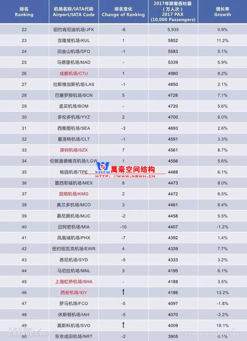 我們收集了世界TOP50和國內TOP20的機場資料,發現其中比較有特色且有參考意義的案例,進行比選與討論。