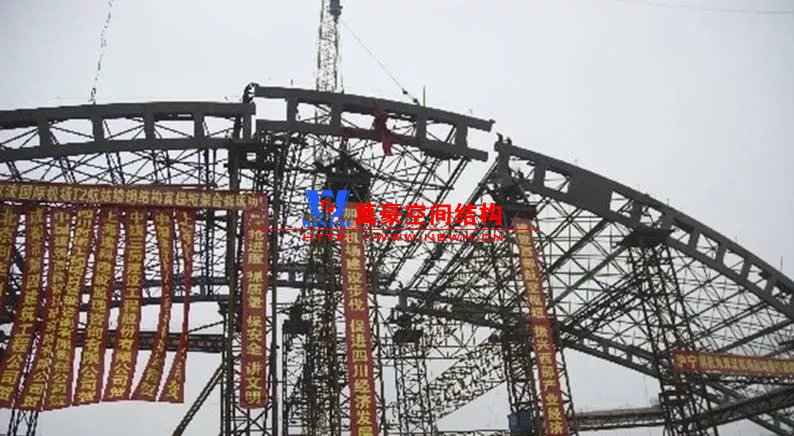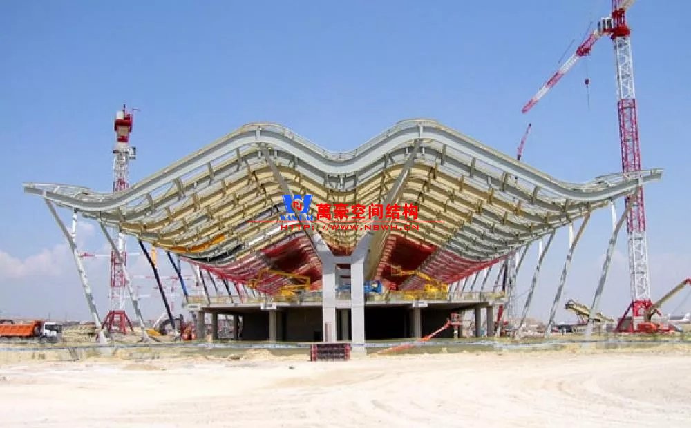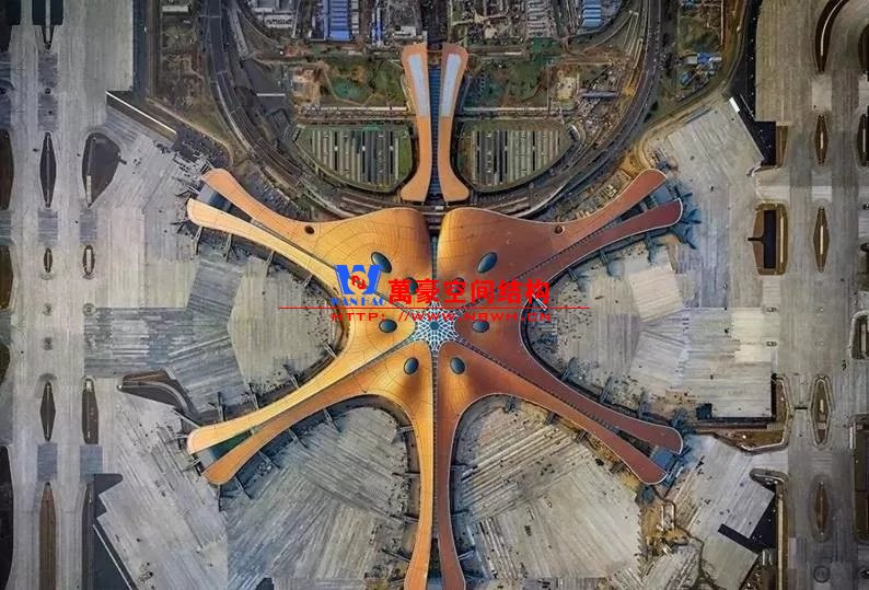 空間結構設計怎么能少了萬能的空間網格結構,網格結構相比與實腹鋼梁經濟性好,比如最近的網紅機場——北京大興機場就采用了空間網格結構。考慮快速施工與經濟性,空間網格結構無異于最好的選擇,但是成型后桿件多顯得雜亂,因而后期建筑對結構構件進行外包,這也是現代建筑中建筑與結構常見的處理手法。