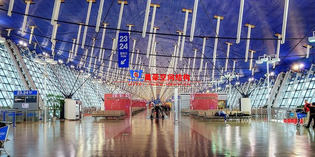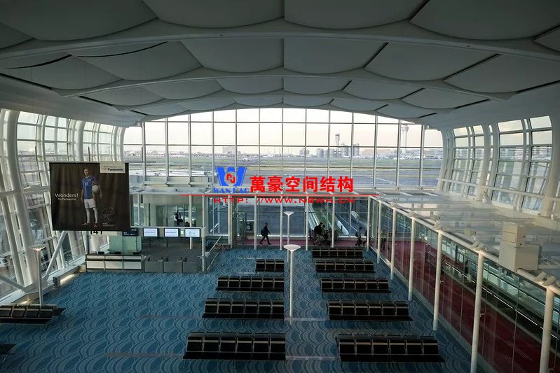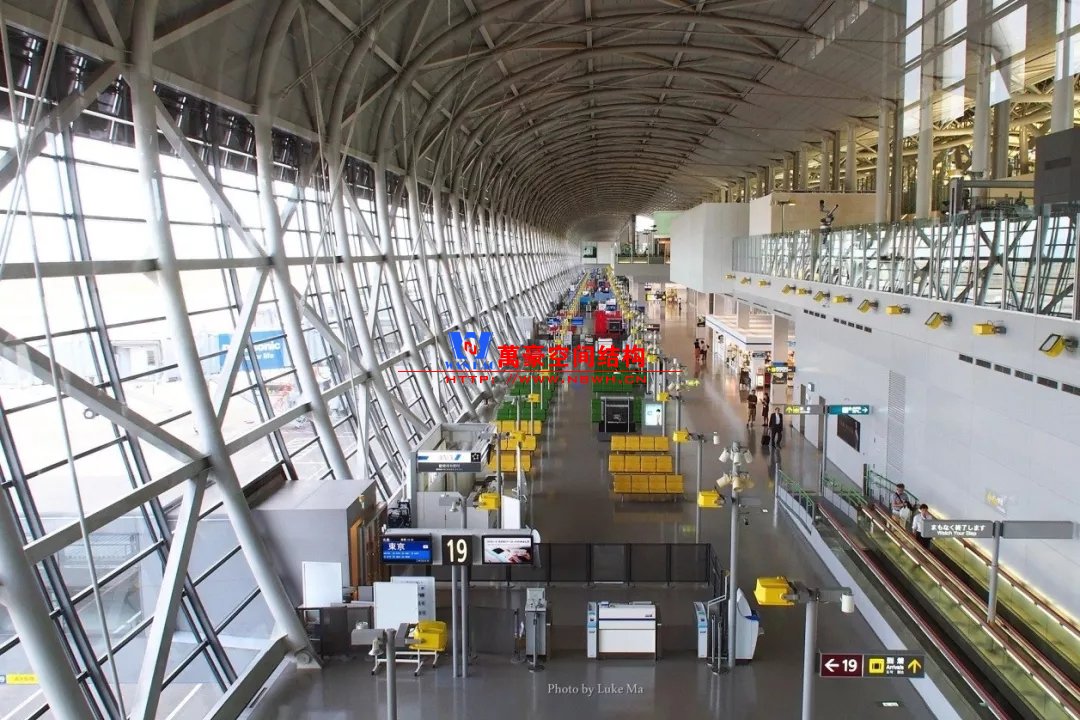 除了實腹鋼梁,我們還可以選擇更加輕盈的張弦梁,其主要表現即在張弦梁的造型以及索節點,建筑效果走的路線也多為精細風。其中經典案例有浦東國際機場T1航站樓和東京羽田機場,歷經多年也不顯得過時。
