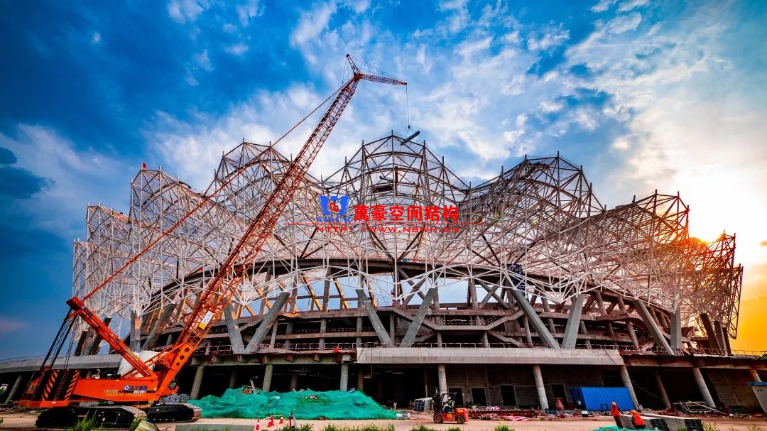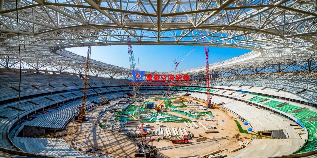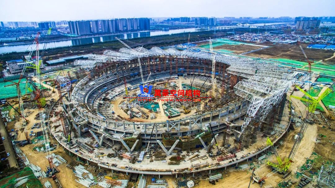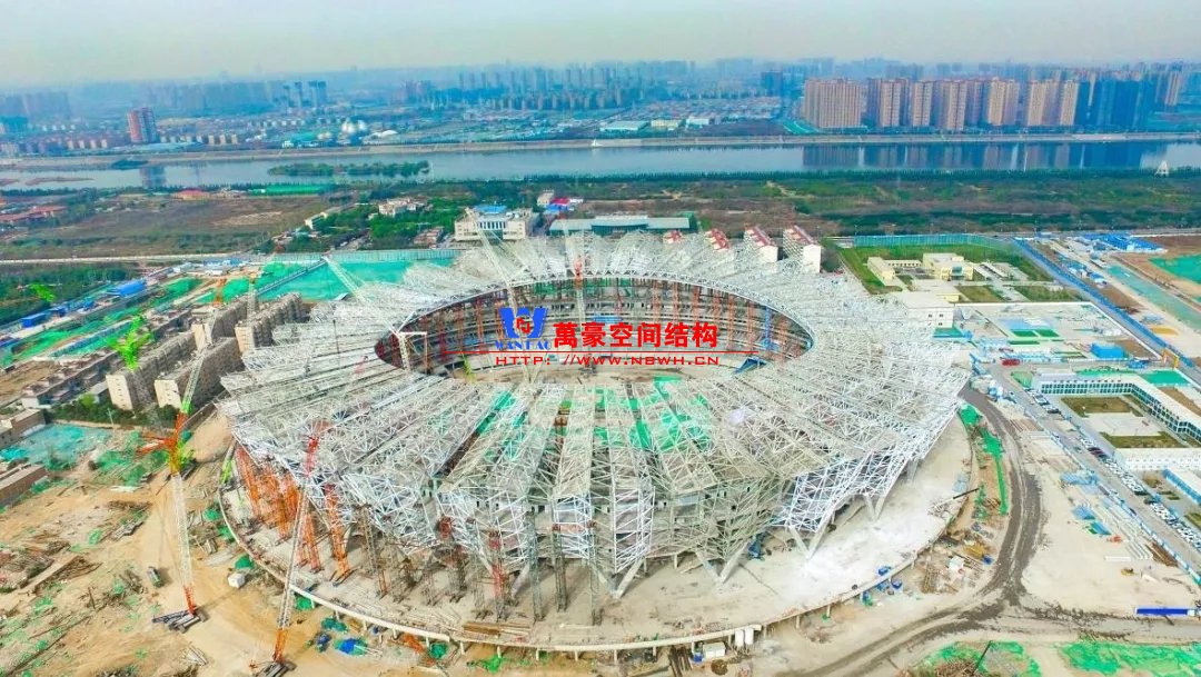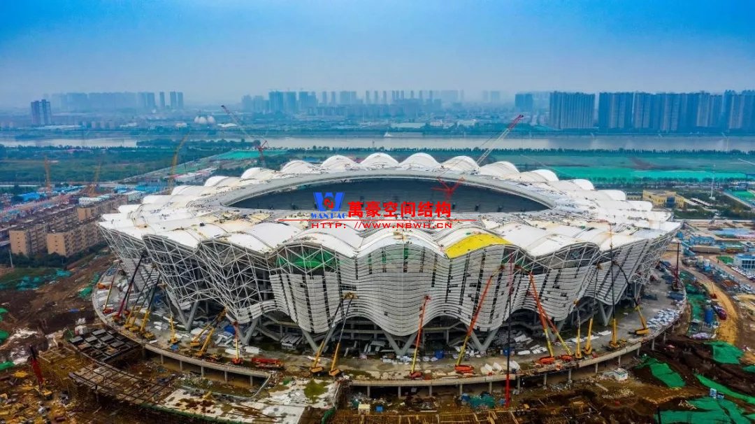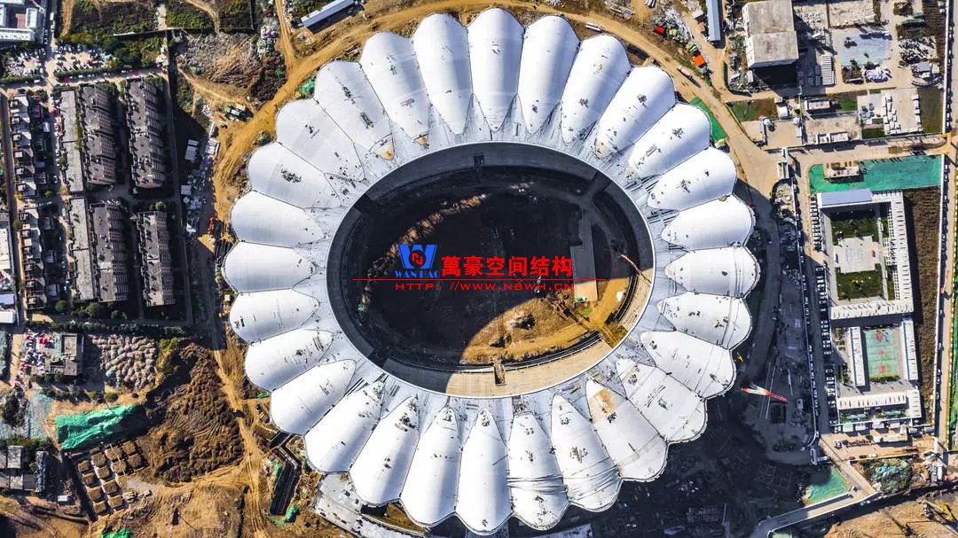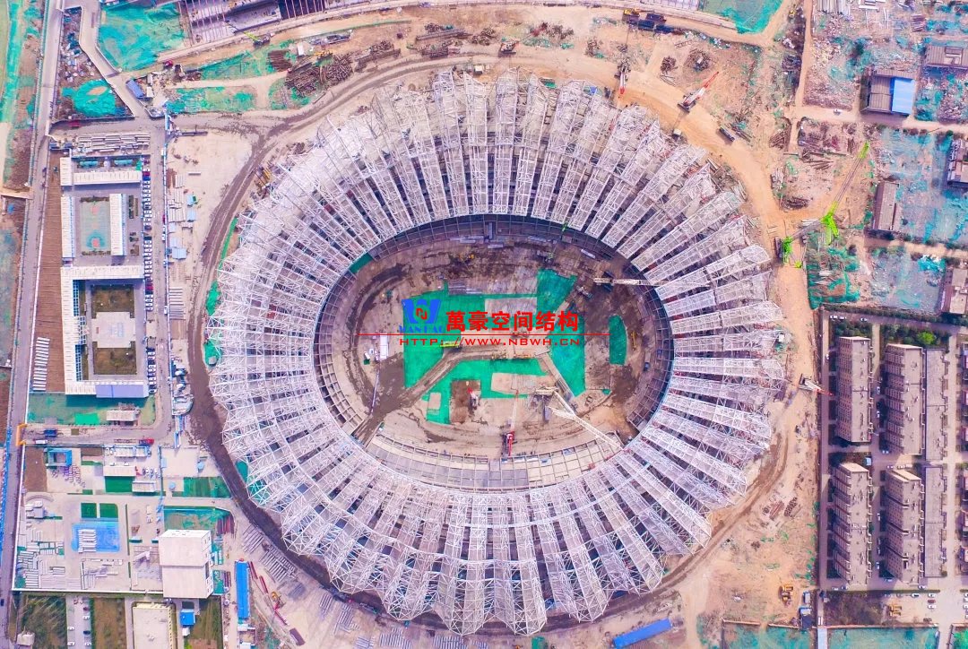 2019年3月28日,體育場罩棚鋼結(jié)構(gòu)合攏