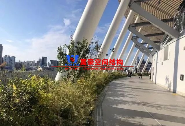 位于場館5層的環(huán)繞式室外走廊被稱為“空之森林”。這里總長度為850米,距離地面20米,種植了不同種類的植物,錯落有致,宛若一座空中花園,與周圍神宮外苑的“大地森林”相呼應。場館周圍栽種了約4.7萬棵植物,建筑物本身使用了來自日本47個都道府縣的木材。