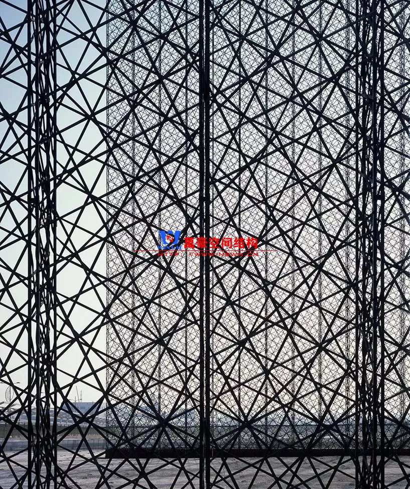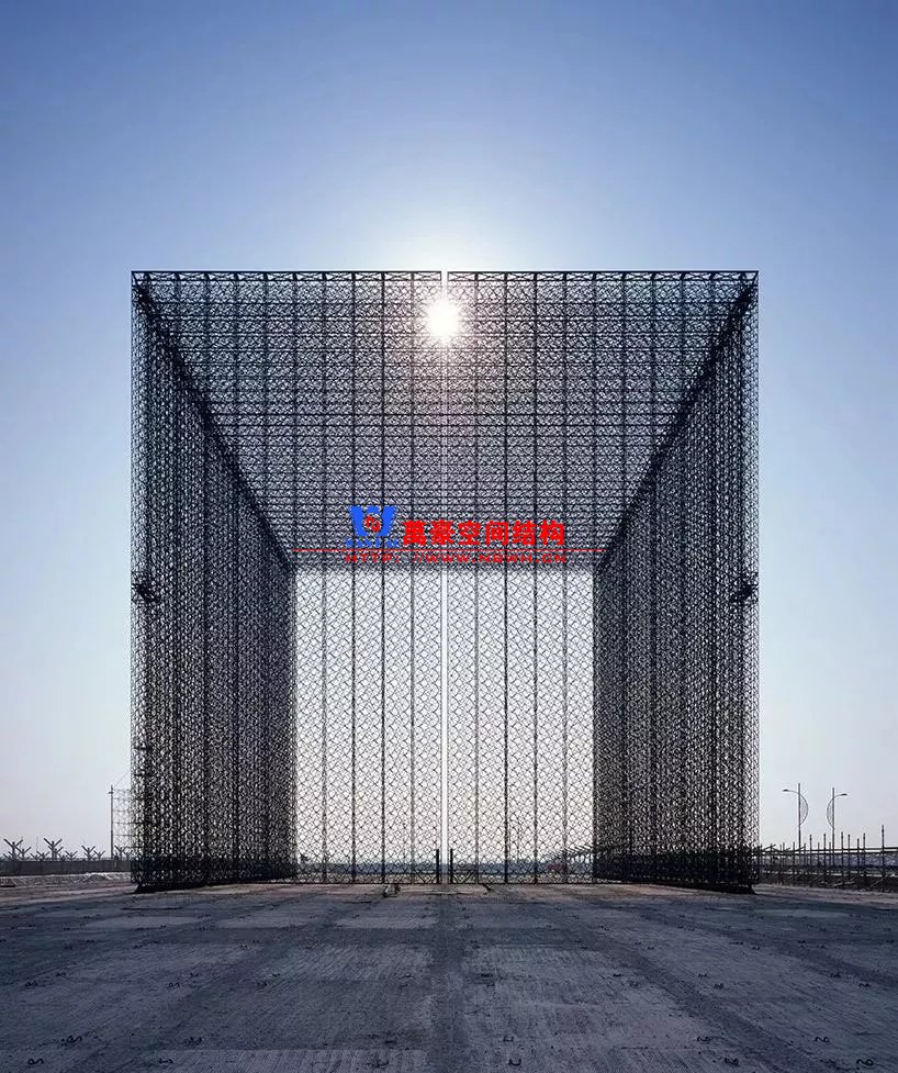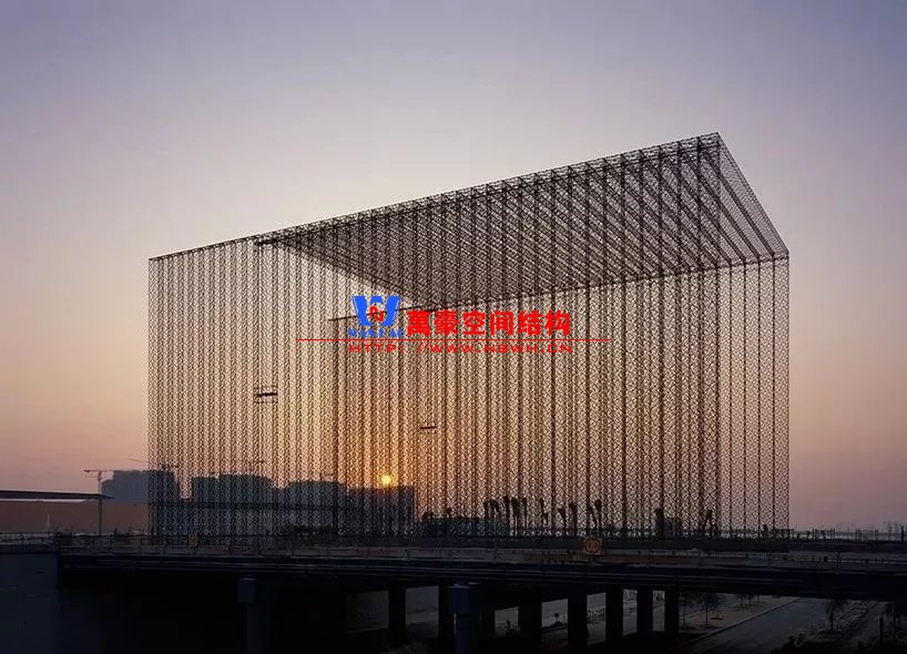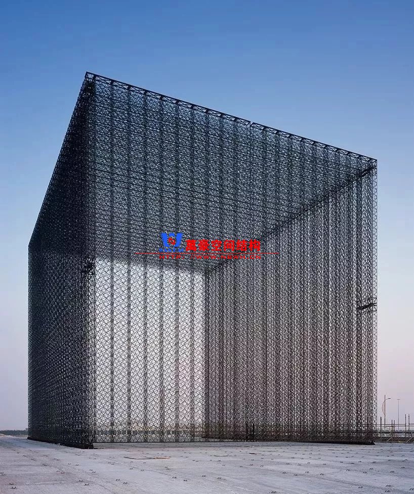 在2020迪拜世博會入口大門的設計上,Asif Khan將傳統(tǒng)窗花,一種該地區(qū)廣泛使用的用于調(diào)節(jié)陽光和空氣流通的精細設計,進行了未來主義的適用。黑色蕾絲形式的立方體同時創(chuàng)造出神秘的黑暗空隙,湊近看時,會滲透進更多的光線。“編織物”在藍天下描繪了一幅圖案鮮明的壁畫,同時也在場地上投射出鏡像的陰影,代表著一種藝術(shù)化的,建筑形式的,本土化的歡迎客人的方式。