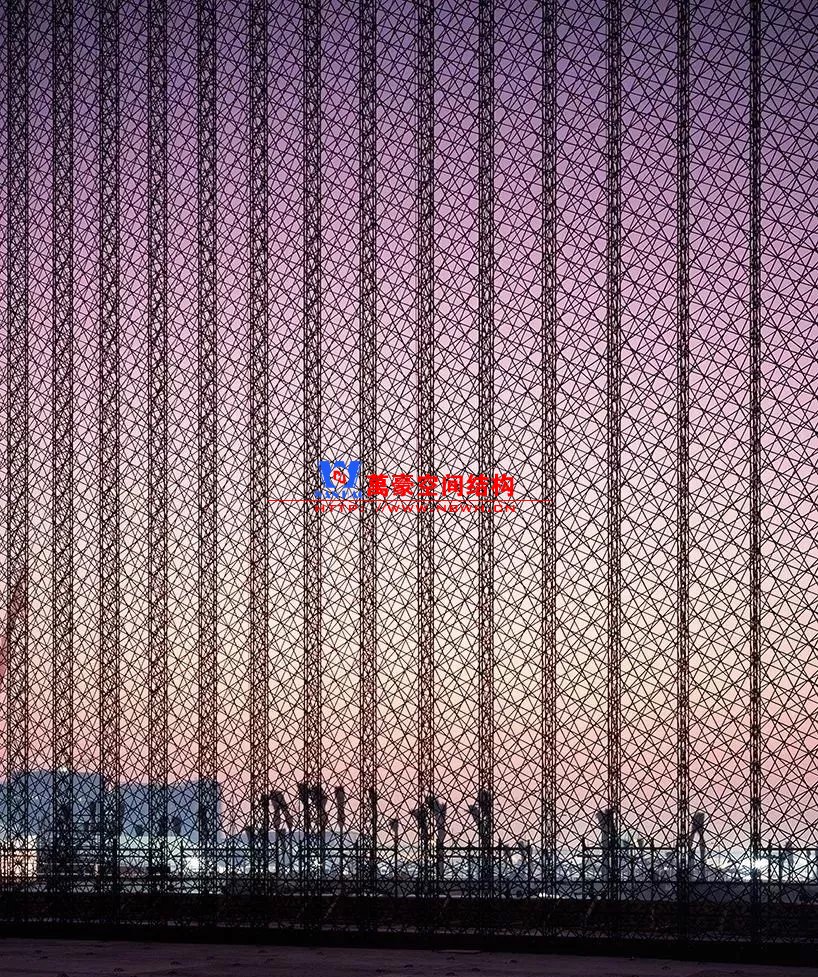 這三座大門完全由超輕的碳纖維混合絲編織而成,具有很高的結(jié)構(gòu)強度。事實上,這使得每一扇大門在無額外支撐的情況下能達到21米高,30米長。每一座大門有兩扇巨大的門構(gòu)成——21米高,10.5米寬,將在2020世博會期間的每個清晨打開以迎接從世界各地來的游客。它們被分別置于場地的三個區(qū)域——機遇、移動和可持續(xù)性,而且,一旦進入,人們將被引導至樹木蔥郁的到達庭院,該庭院同樣是由 Asif Khan 設計。