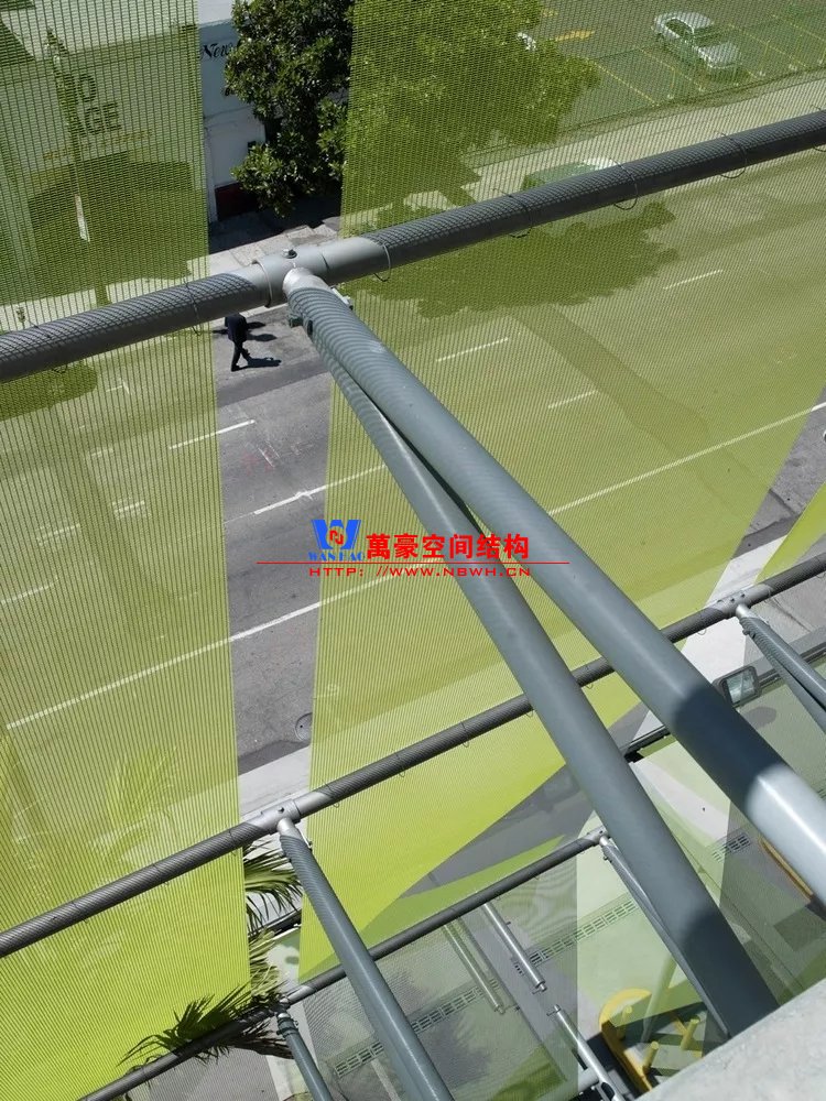 當(dāng)使用金屬網(wǎng)作為遮陽與玻璃幕墻相結(jié)合時(shí),需要注重整個(gè)立面系統(tǒng)的相互作用,包括玻璃、陽光仰角、金屬網(wǎng)與玻璃立面的距離、金屬的光澤度等。