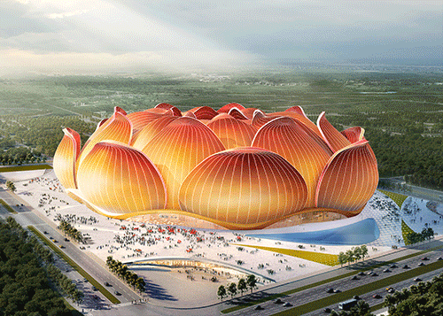 與國外頂級球場普遍采用的橢圓造型不同,廣州恒大足球場以荷花綻放為設計理念,凸顯濃郁的中國文化特色,既代表球場成為“花城”廣州永久盛開的城市名片,也寓意著中國足球擁有高潔堅韌的品格,在國際競技場上爭奇斗艷。主色調采用炙熱的金紅色,這不僅是中超霸主廣州隊的隊服色,也是廣州這座“足球第一城”的代表色。