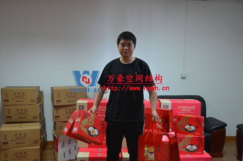 我們?nèi)f豪空間結(jié)構(gòu)端午的福利是一盒精致的五芳齋粽子以及一盒咸鴨蛋禮盒哦。 你們端午節(jié)都發(fā)什么了呢?