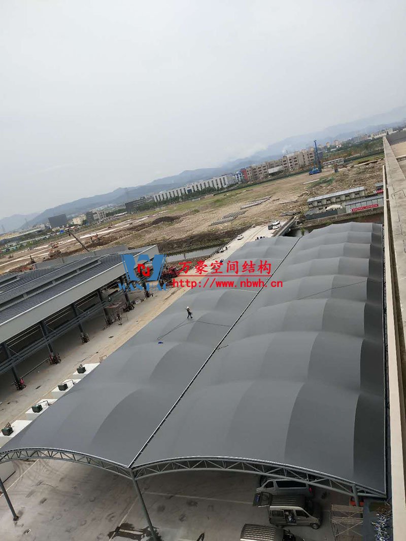 隨著社會的發展,膜結構雨棚運用在不斷的擴大。其中,寧波萬豪空間結構工程有限公司,自2007年創建以來,一直保持著高速、穩健的發展速度。公司設計創新景觀、交通、體育、商業設施等一系列膜結構雨棚產品。