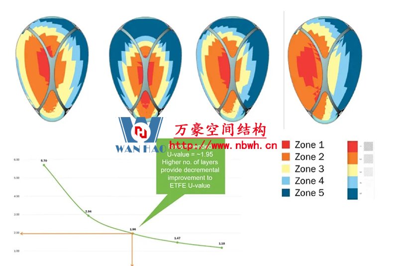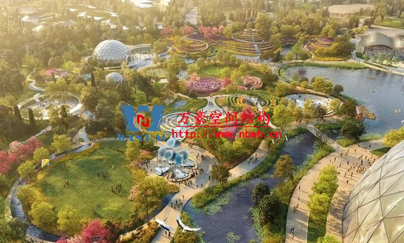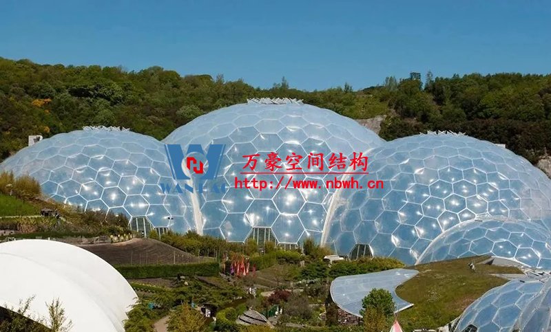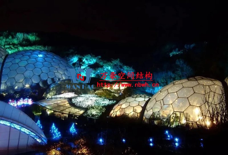 為了滿足室內(nèi)植物的采光條件,該館穹頂全部采用輕盈的ETFE膜覆蓋,“三膜兩腔”的膜結(jié)構(gòu)充氣后就像一個(gè)巨大的泡泡,通過(guò)充氣量的多少來(lái)調(diào)節(jié)室內(nèi)溫度,從而營(yíng)造一個(gè)節(jié)能、環(huán)保、可持續(xù)的熱帶植物 “成長(zhǎng)樂(lè)園”。