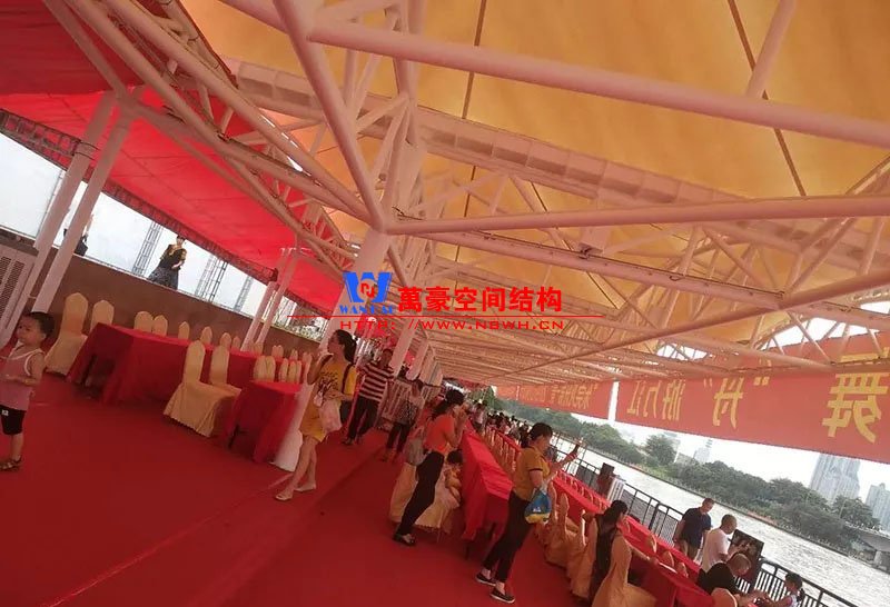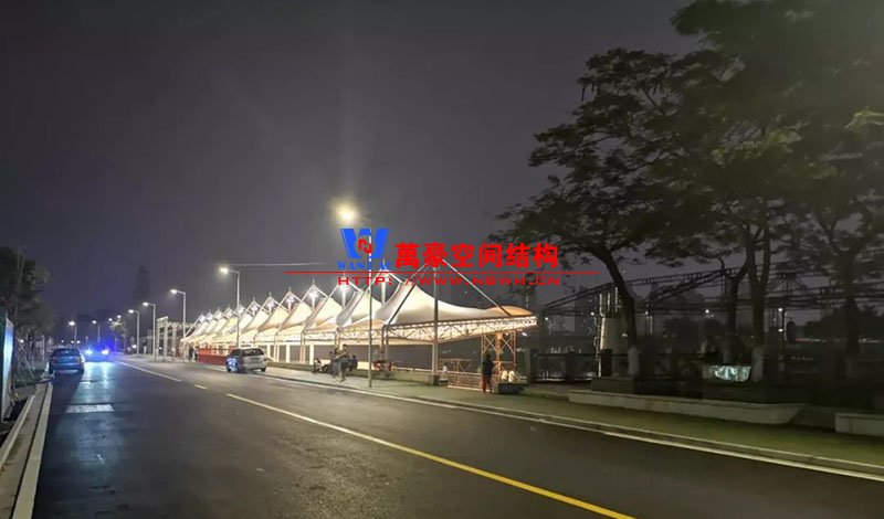 東莞東江西岸景觀膜結(jié)構(gòu)工程位于廣東省東莞市,該項(xiàng)目是當(dāng)?shù)卣蛟斓闹攸c(diǎn)工程,是為了宣揚(yáng)中華傳統(tǒng)文化龍舟節(jié)專門(mén)打造的,由寧波萬(wàn)豪空間結(jié)構(gòu)工程有限公司中標(biāo)承建。