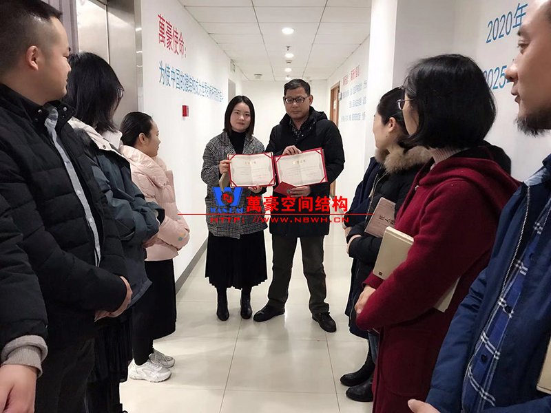 為此,向來賞罰分明的萬豪空間結構,決定為這兩個工程的項目經理汪經理進行頒獎。