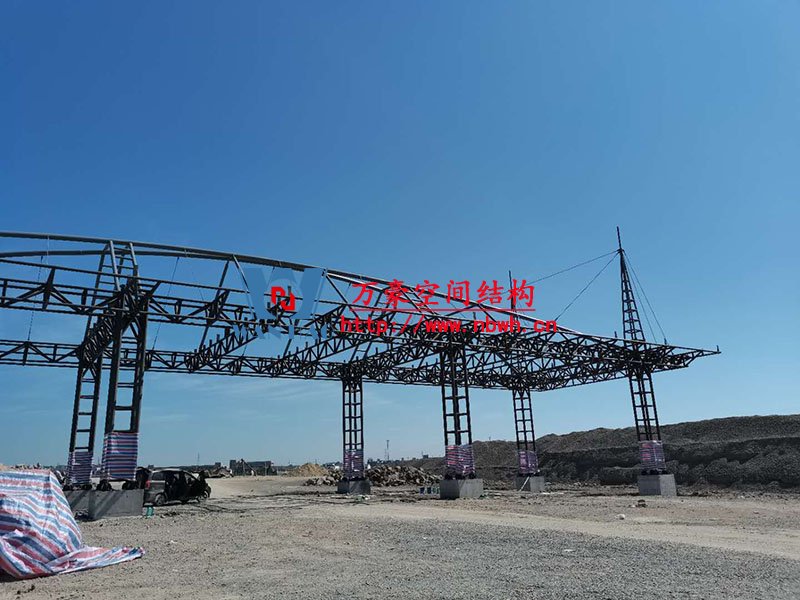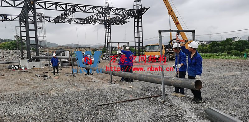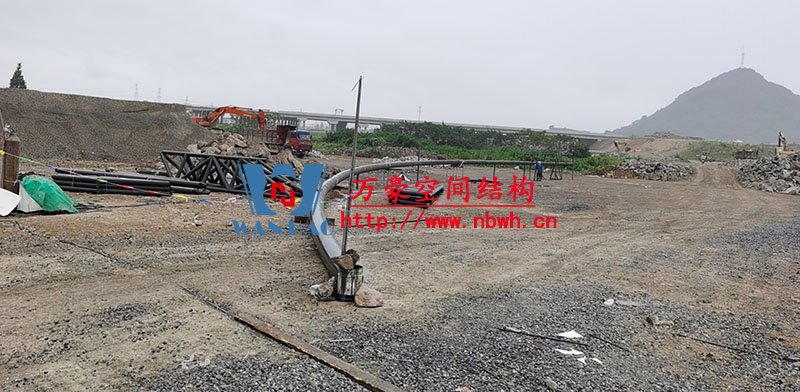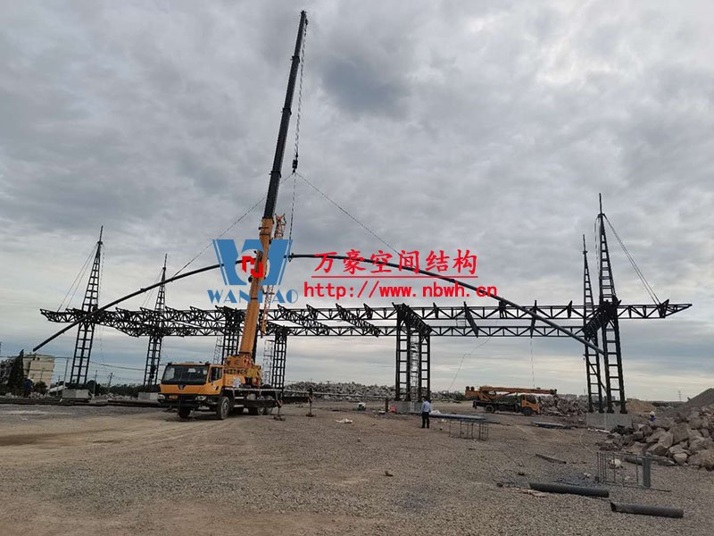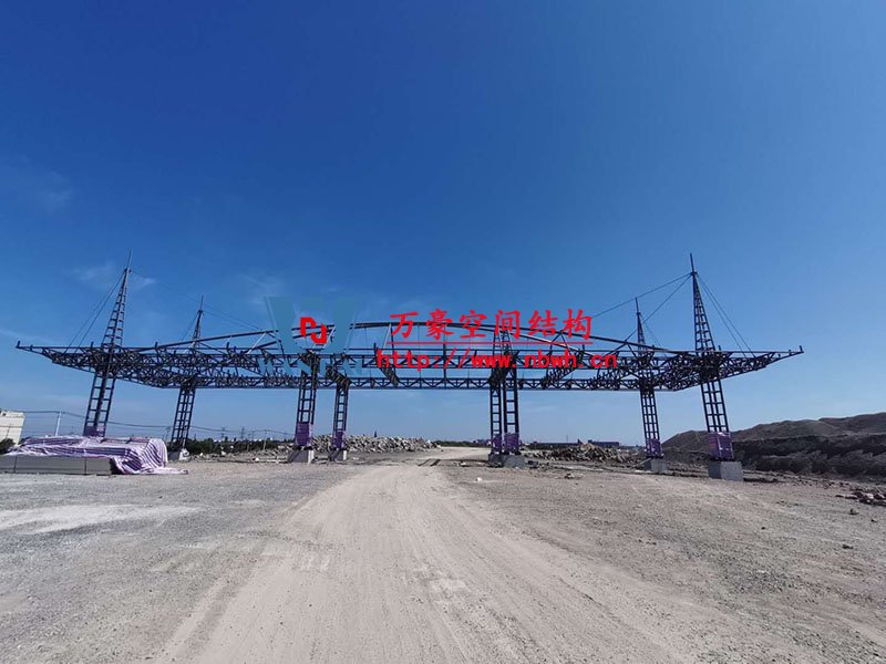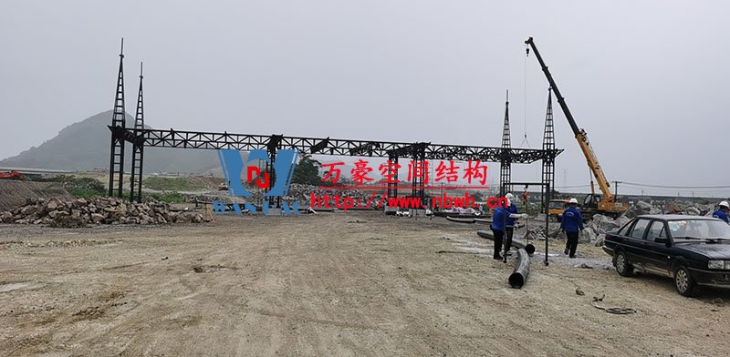 紹興西高速收費站頂棚工程用鋼量80噸,由寧波萬豪空間結構工程有限公司加工和安裝。 目前,項目鋼結構安裝完成。 期待整個工程的完工,來領略它別致的風采。