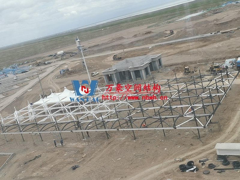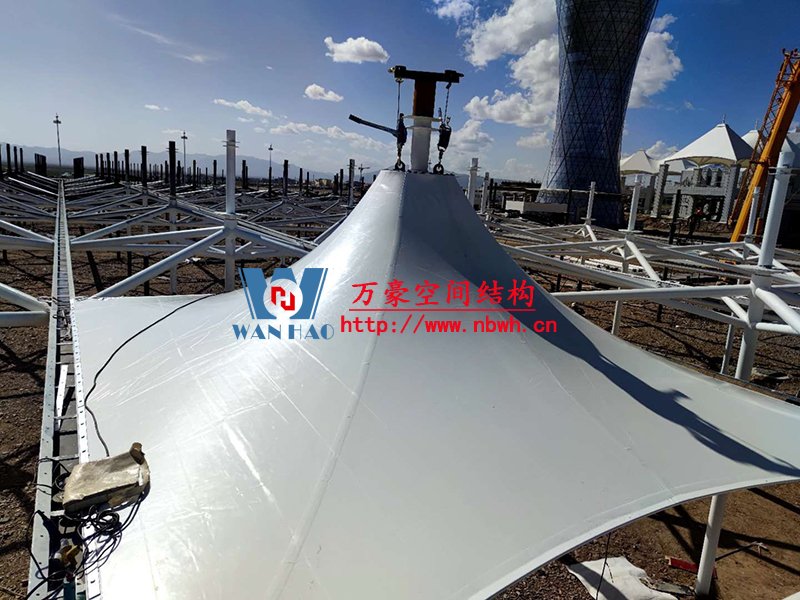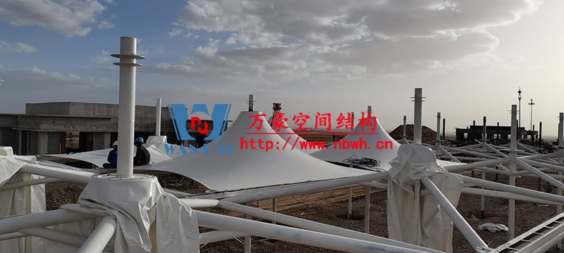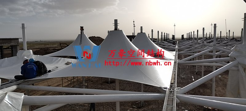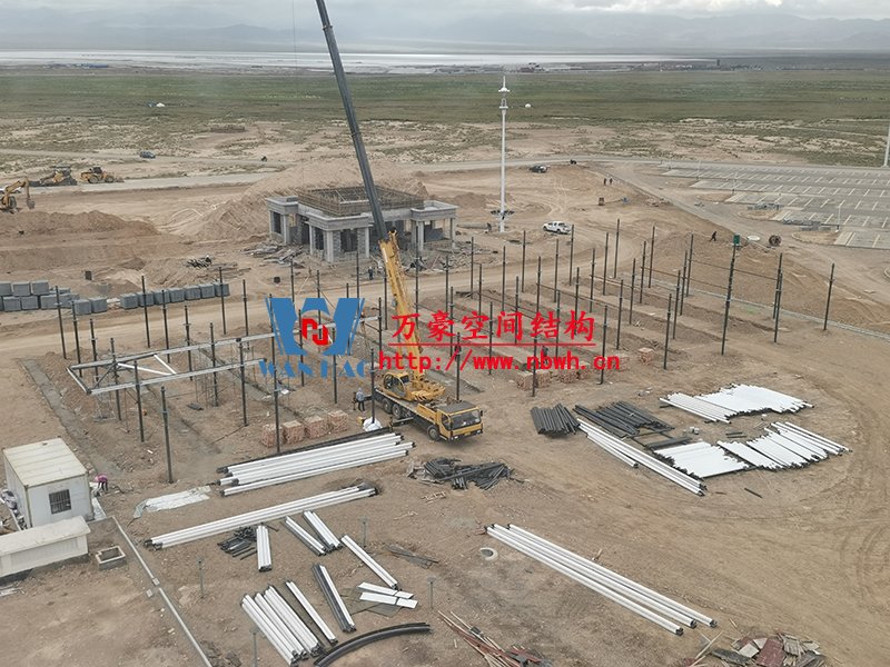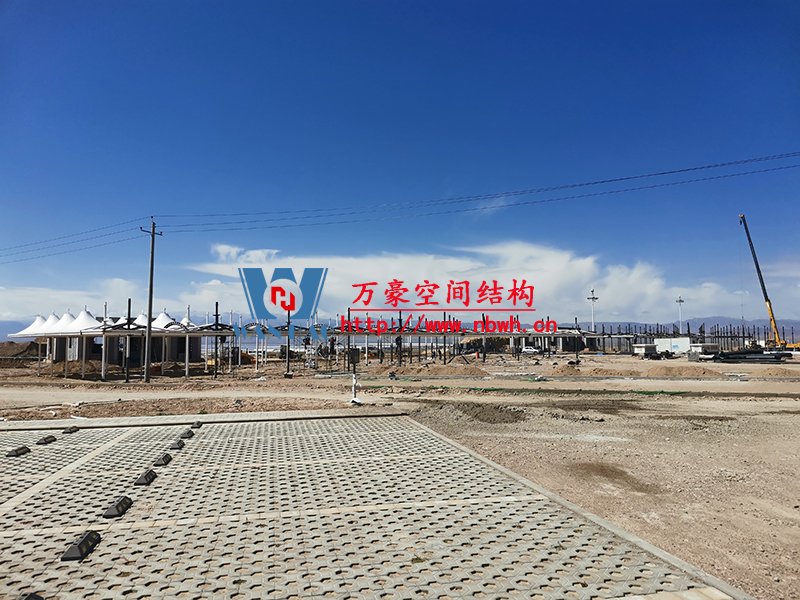 茶卡景區(qū)(二期)膜結構工程A區(qū)鋼結構主體施工完成,膜結構開始安裝