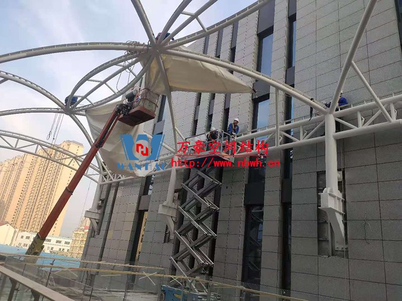 [卓越•財富廣場]是新泰市重點打造休閑,娛樂,商務,五星級酒店于一體大型城市商業綜合體。建筑面積約6.5萬平方米,總投資約3.5億元人民幣。是新泰市投資和建筑面積最龐大的商業綜合體項目,是新甫社區招商引資,新泰市政府重點招商項目。 其中,新泰卓越·財富廣場膜結構屋頂項目由寧波萬豪空間結構工程有限公司承建。 目前,該膜結構工程的鋼結構工程部分已完成并經初步驗收,膜結構進入安裝階段。 期待整個工程的完工,來領略它別致的風采。