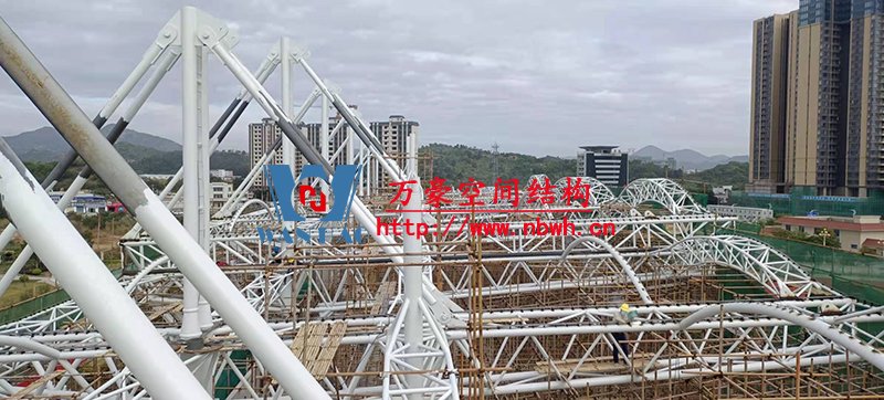 汕尾市體育中心(一期)工程田徑場膜結構項目位于廣東省汕尾市,PTFE膜結構展開面積5000平米,由寧波萬豪空間結構工程有限公司承建。 目前,項目鋼結構接近尾聲,準備開始安裝膜結構。 期待整個工程的完工,來領略它別致的風采。