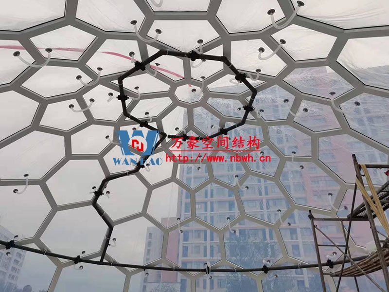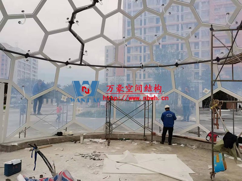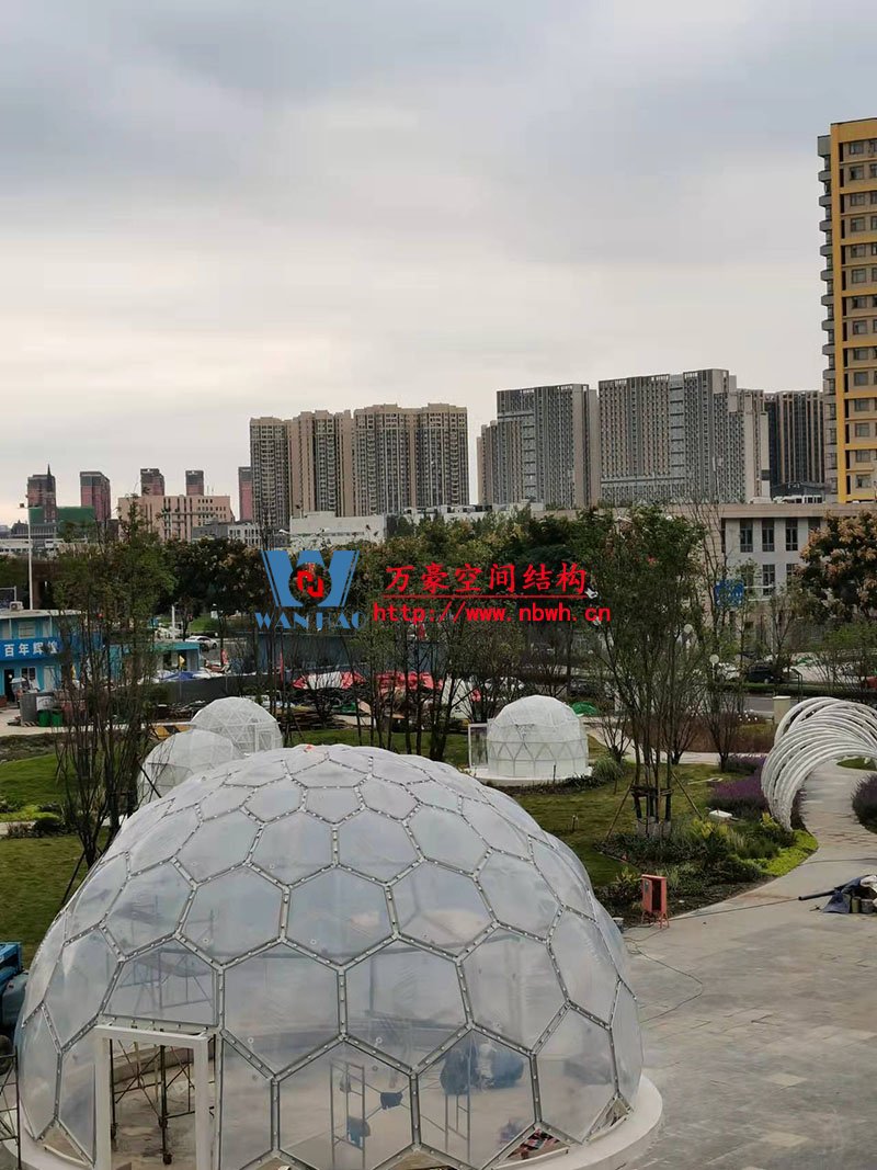 無線創智城市功能空間業態優化五星集市鋼膜結構工程位于四川省成都市,由寧波萬豪空間結構工程有限公司承建。