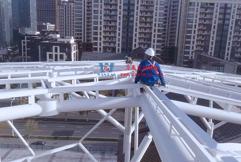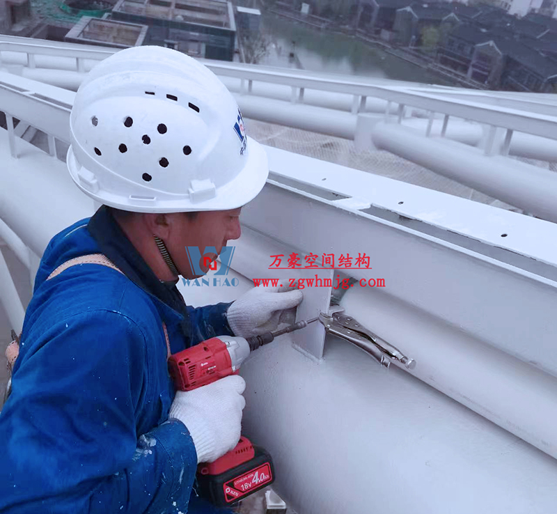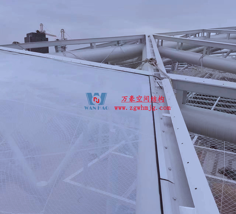 最近項目不斷傳回最新施工進展,目前鋼構主體已經完成,油漆的涂刷、二次鋼構以及排水管道的安裝也已接近尾聲,現(xiàn)在進行最后的收尾工作。樣品膜的試裝也已完結,等待后期整體鋼構以及排水管安裝完畢,開始進行膜體的安裝。期待工程的整體完工,讓我們能夠盡早一飽眼福。