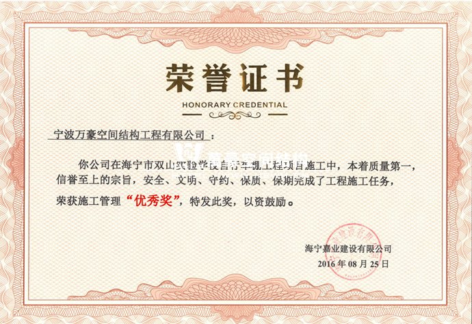 海寧實驗學(xué)校車棚項目榮獲“優(yōu)秀獎”